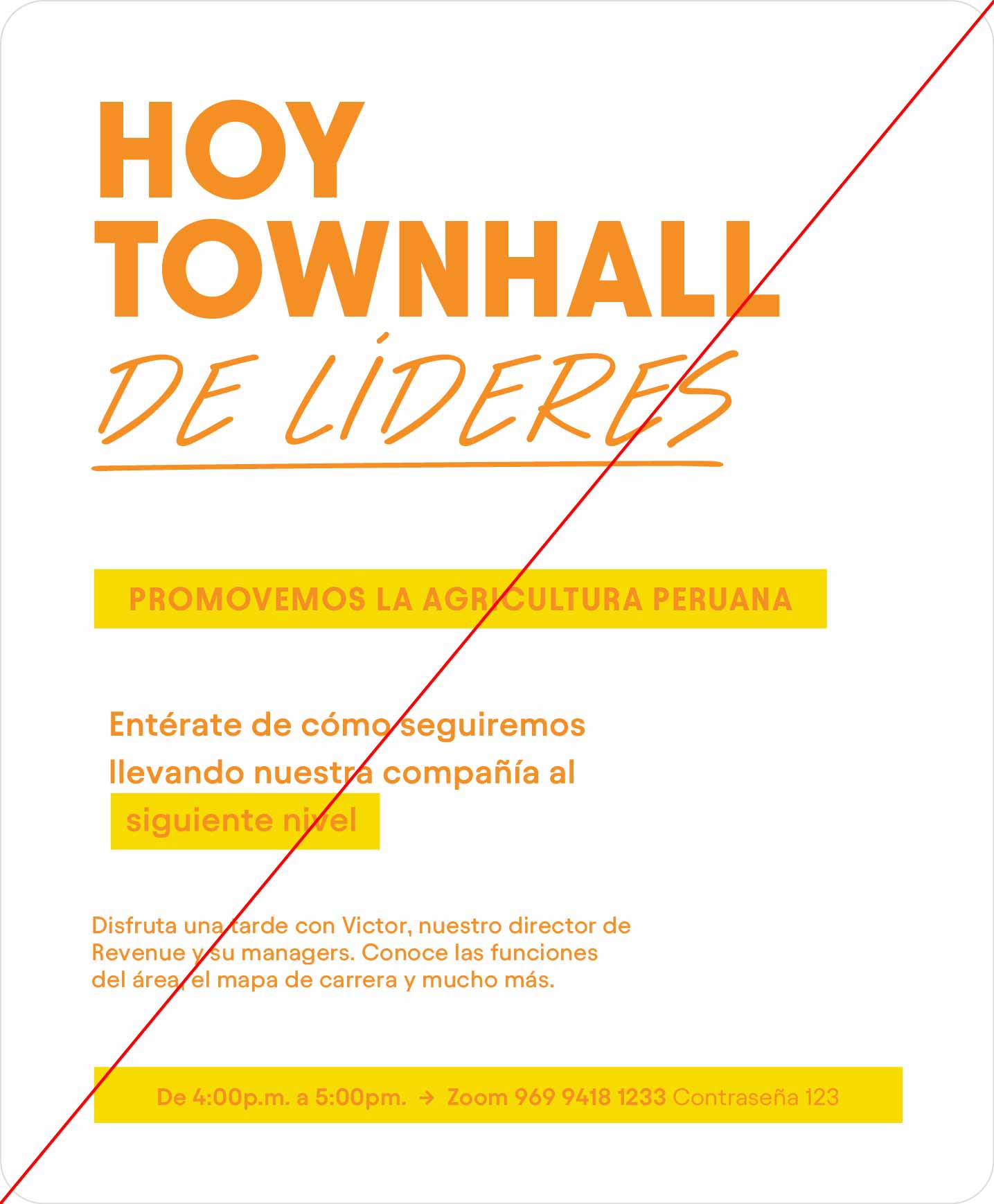 ES IMPORTANTE saber que estos colores no deben ser usados como fondos planos ni para titulares o palabras destacadas. Sí pueden ser usados, en cambio, para botones o stickers que comuniquen una llamada a la acción.