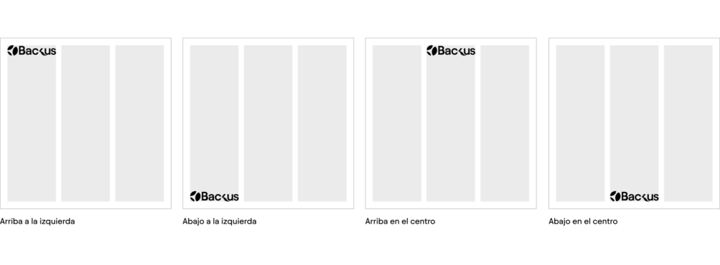 Cuando el logotipo de Backus va acompañado de otros logotipos de la compañía y «Orgullosamente parte de ABInBev» se recomienda establecer una distancia del tamaño del símbolo.
